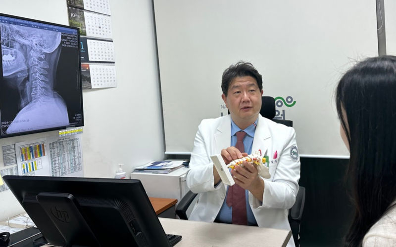 21일 강남나누리병원에 따르면 60대 환자 A씨는 수개월 전부터 목에 알 수 없는 통증이 생기고, 손·발 힘 빠짐 증상이 나타나 내원했다. 뇌졸중이 의심돼 신경과 진료를 봤지만 이상 소견이 없어 척추센터로 협진을 안내받았다. A씨는 목 자기공명영상(MRI) 검사를 진행했고 '경추척수증' 진단받은 후 척추내시경을 진행했다. 수술 후 손·발 감각이 정상으로 돌아왔다.