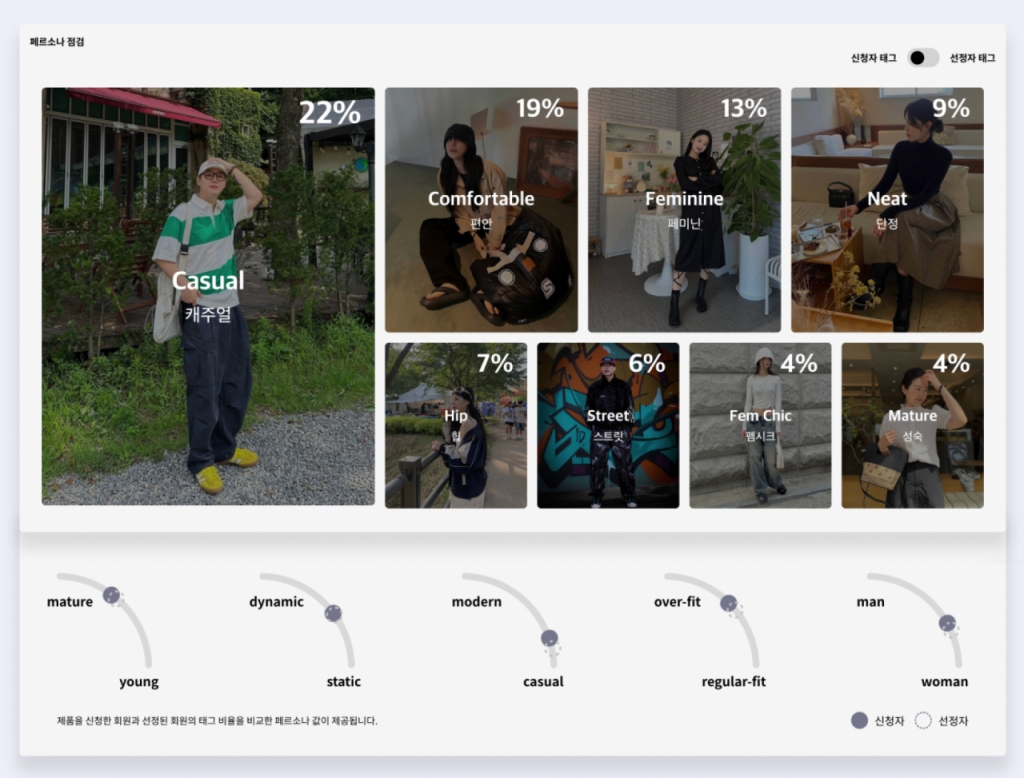 '룩태그'는 패션 마케팅의 성과를 구체적으로 분석·관리할 수 있는 독자적인 기술이다. 크리에이터 콘텐츠를 정밀하게 분석해 브랜드와 얼마나 잘 맞는지, 또 그 결과가 어떻게 나왔는지를 파악할 수 있도록 돕는다. 이를 통해 브랜드는 단순히 팔로워 수나 좋아요 수에 의존하지 않고, 실질적인 마케팅 효과를 측정할 수 있다.