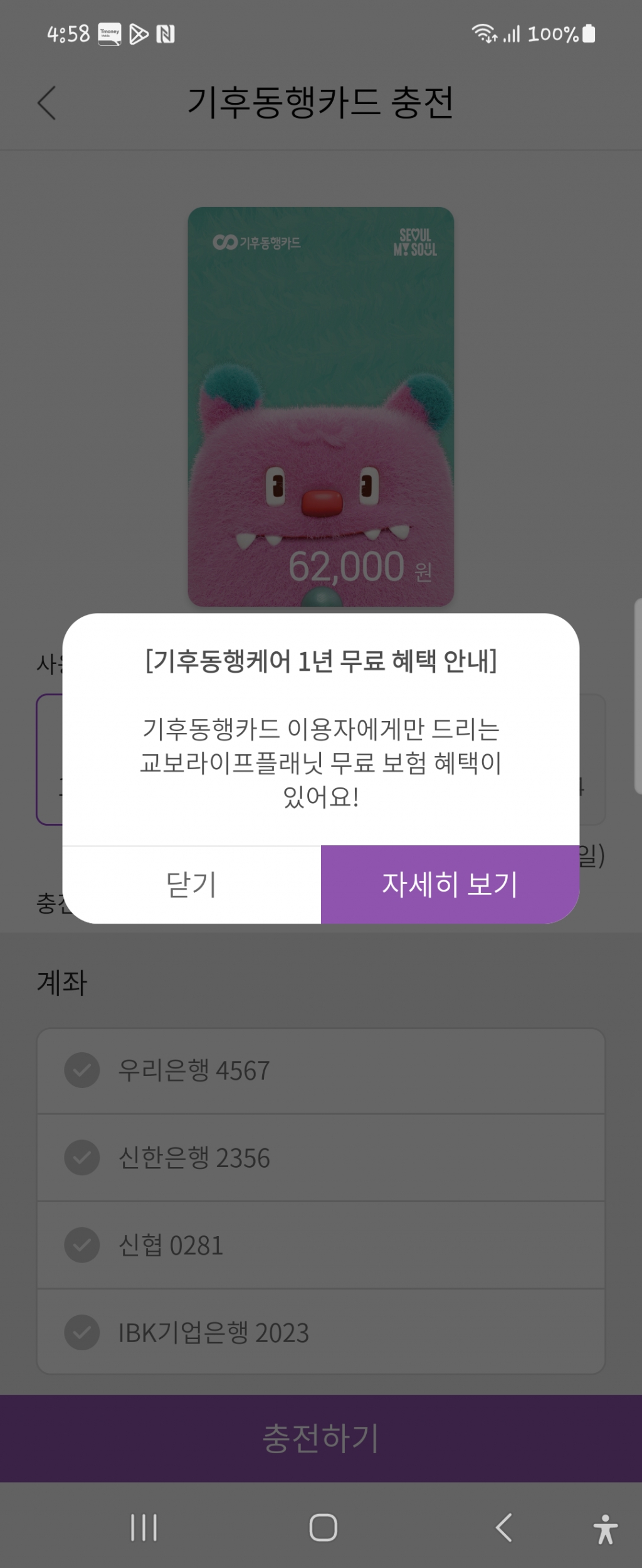 앞으로 '모바일 기후동행카드' 이용자들은 일상의 사고나 재해를 보장하는 보험에 무료로 가입할 수 있다. 대중교통 이용 때 발생할 수 있는 사고진단비, 치료비 등을 보장한다. 기후동행카드는 누적 충전 700만 장에 서울 대중교통 이용자 8명 중 1명이 사용하는 서울시의 대표적인 밀리언셀러 교통정책이다.