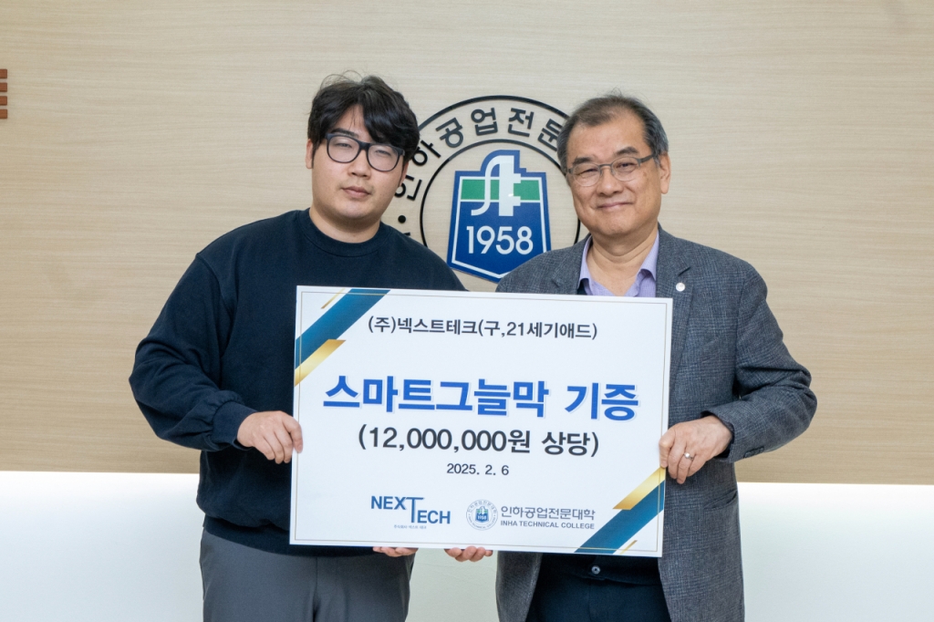 인하공업전문대학이 지난 6일 ㈜넥스트테크로부터 '스마트 그늘막'을 기증받았다고 10일 밝혔다.
