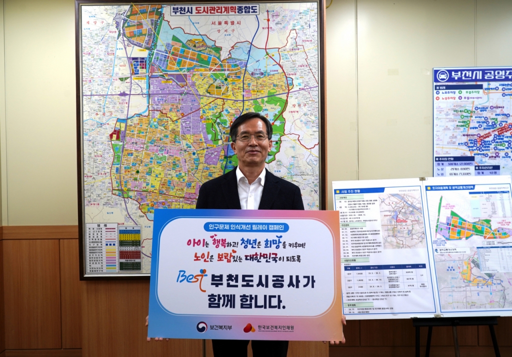 경기 부천도시공사(이하 공사)는 저출생 및 지방소멸 극복을 위한 사회적 인식을 높이고자 '인구문제 인식개선 릴레이 캠페인'에 동참했다고 12일 밝혔다.