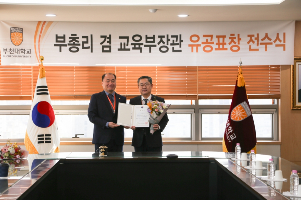 한정석 부천대 총장(왼쪽)과 김영길 산학취업처 현장실습 담당./사진제공=부천대 부천대학교 산학취업처는 최근 김영길 현장실습 담당이 대학생 현장실습 활성화에 기여한 공로를 인정받아 부총리 겸 교육부 장관 표창을 받았다고 28일 밝혔다. 김 담당은 '현장실습 운영관리 시스템'과 'Co-op 학기제' 등을 통해 현장실습 프로세스를 안정화했다. 부천대 학생의 실무능력을 향상하고 취업 기회를 확대했다. 한편 부천대 현장실습지원센터는 현재까지 총 830여명의 현장실습을 지원했다. 2024학년도에는 90개 기관, 300명 이상이 참여했다. 독자들의 PICK! 100만원도 못 벌던 개그맨..."수입 1000배" 변호사 된 깜짝 근황 "조진웅, 은퇴할 줄 몰랐다…식사 제안도 거절" 정지영 감독이 전한 근황 "새벽에 전화, 돈 요구" 김원희, 사생활 털렸다...해킹범이 협박 "수영장서 불륜" 증거 잡은 아내 고소 당했다...간통죄 폐지 후 벌어진 일