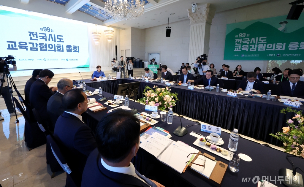 ![[대구=뉴시스] 이무열 기자 = 강은희 협의회장(대구시교육감)이 26일 오후 대구 수성구 수성스퀘어에서 열린 제99회 전국시도 교육감협의회 총회에서 인사말을 하고 있다. 2024.09.26. /사진=이무열](https://thumb.mt.co.kr/cdn-cgi/image/f=avif/21/2025/03/2025032609495780909_1.jpg)