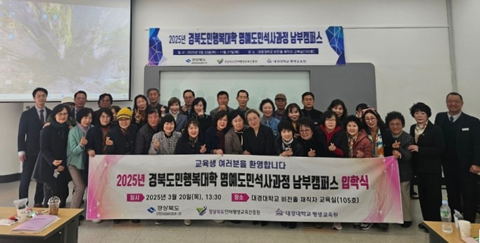 대경대학교 평생교육원이 지난 20일 교내 비전홀에서 '경북도민행복대학 명예도민석사과정 남부캠퍼스 입학식'을 개최했다고 27일 밝혔다.