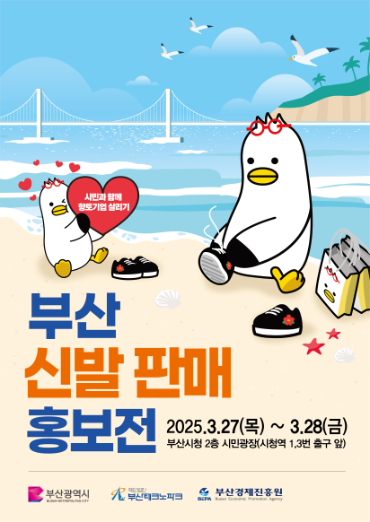 부산테크노파크가 오는 28일까지 부산시청 2층 야외 시민광장에서 '시민과 함께, 향토기업 살리기 부산 신발 판매·홍보전'을 연다.