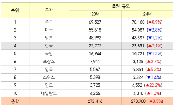 출원건수로도 2020년 독일을 제치고 5위에서 4위로 올라선 이후 5년 연속 세계 4위를 차지했다. 우리나라는 1998년 이후 27년간 지속적인 PCT 증가세다.