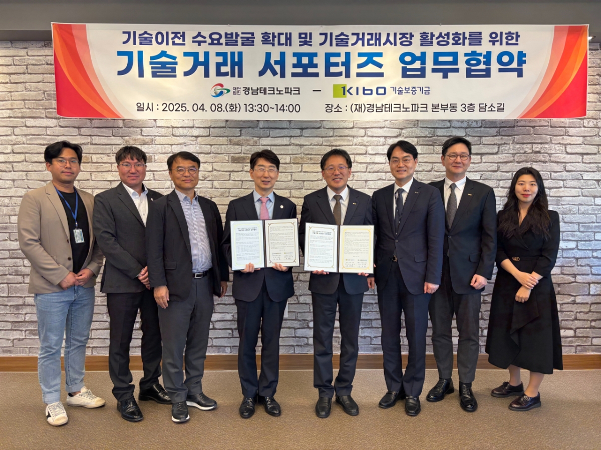 경남테크노파크(경남TP)가 8일 기술보증기금과 기술거래 서포터즈 사업 협력기관 업무협약을 체결했다.