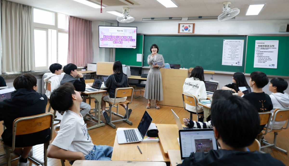 올해 3월부터 AI디지털교과서가 학교 현장에 본격 도입됐다. 초3,4·중1·고1의 수학, 영어, 정보 과목이 대상이다. AI디지털교과서는 전국 채택률이 30% 수준이지만 대구에서만큼은 98%가 사용하고 있다. 강은희 대구시 교육감이 앞장선 덕분이다. AI디지털교과서는 채점, 수업활동 기록 등 선생님의 업무를 덜어주고, 아이들의 모듬 활동을 독려해 '잠자지 않는 교실'을 만들기 위해 도입됐다.