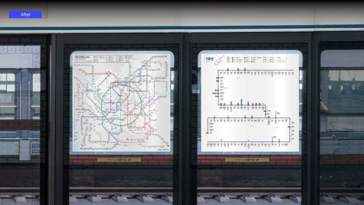 이에 서울시는 서울교통공사와 협의 후 올 하반기부터 순차적으로 신형 단일노선도를 부착할 예정이다. 신형 단일노선도는 가로형, 세로형, 정방형(안전문 부착형) 등 총 3가지 형태다.