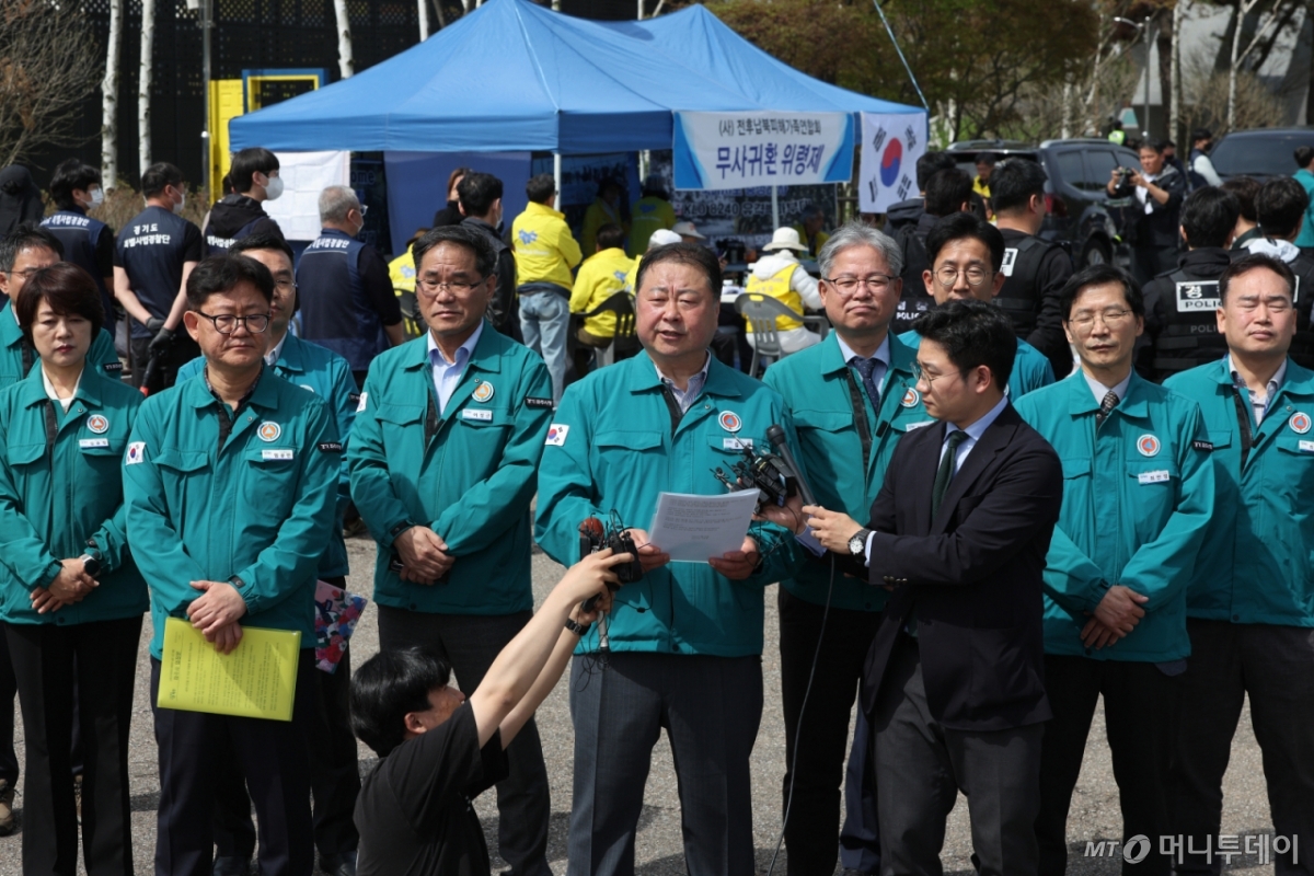 ![[파주=뉴시스] 황준선 기자 = 김경일 파주시장이 23일 오전 납북자가족모임의 대북 전단 살포 행사가 예정된 경기 파주시 국립 6.25전쟁납북자기념관 인근에서 대북 전단 살포 반대 입장을 밝히고 있다. /사진=뉴시스](https://thumb.mt.co.kr/cdn-cgi/image/f=avif/21/2025/04/2025042314574369531_1.jpg)