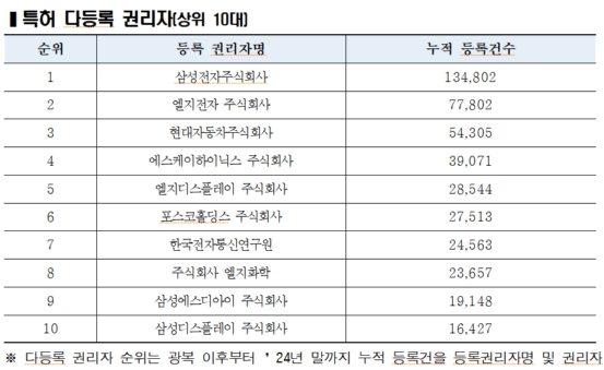 특허청, 광복 80주년·발명의 날 60주년 맞아 특허·상표 최다등록 권리자 발표