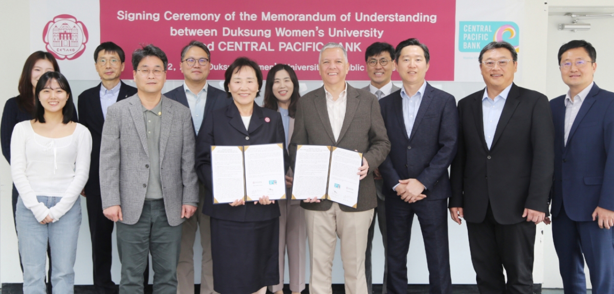 덕성여자대학교가 지난 2일 교내 행정동 3층 대회의실에서 하와이 CPB(Central Pacific Bank)와 상호협력에 관한 양해각서(MOU)를 체결했다고 8일 밝혔다. 협약식에는 김건희 덕성여대 총장, 아놀드 마르티네스 CPB 은행장 등이 참석했다.