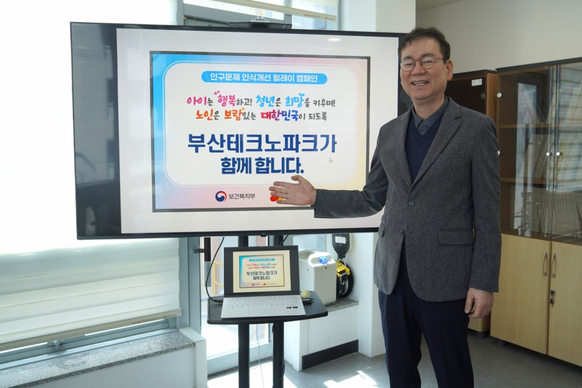 부산테크노파크는 김형균 원장이 인구문제 인식개선 릴레이 캠페인에 동참했다고 19일 밝혔다.