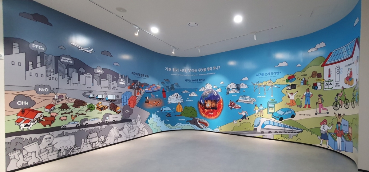 체험관은 웰컴센터, 상설전시관, 어린이 놀이공간, 야외 체험 공간으로 구성됐다. 웰컴센터는 탄소중립의 중요성을 영상으로 훑어보는 공간으로, 이곳을 거쳐 본격적인 전시를 관람하는 동선이다. 어린이 놀이공간에는 인형극 등 유아의 환경감수성을 자극할 수 있는 콘텐츠를 추가했고 야외에는 친환경 자동차와 자가발전을 체험하는 시설이 마련됐다.