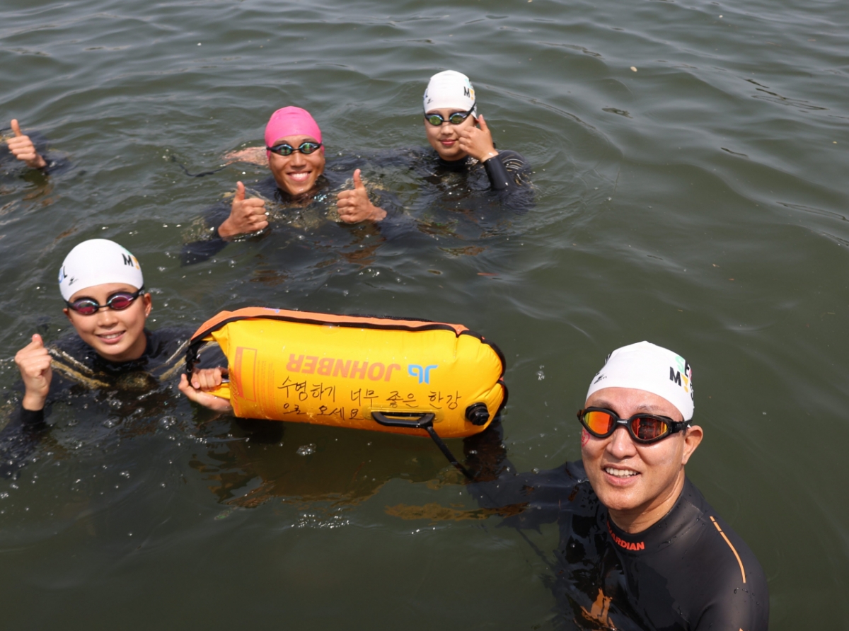 오세훈 서울시장이 한강에 직접 뛰어들어 1km 구간을 수영해 완주했다.