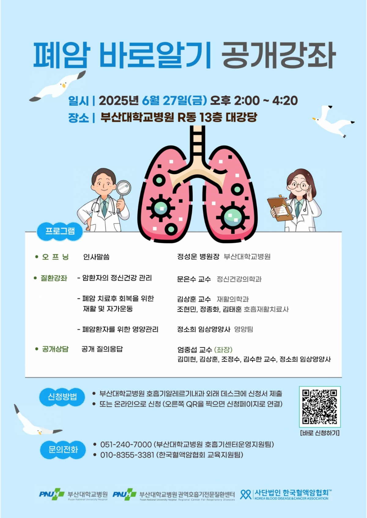 부산대병원 권역호흡기전문질환센터와 한국혈액암협회가 오는 27일 부산대병원 R동 13층 강당에서 '폐암 바로알기 공개강좌'를 연다고 24일 밝혔다.