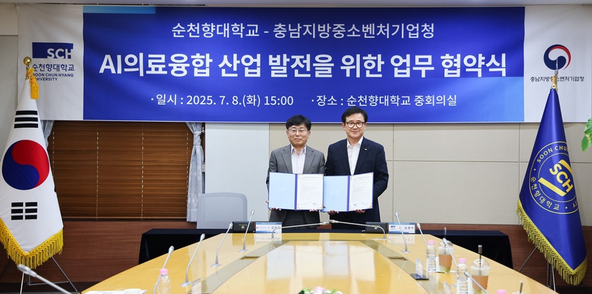 이날 행사에 송병국 순천향대 총장과 김윤우 충남중기청장 등 양 기관 관계자들이 참석했다. 이들은 AI의료융합 창업 생태계를 구축하기로 합의했다.