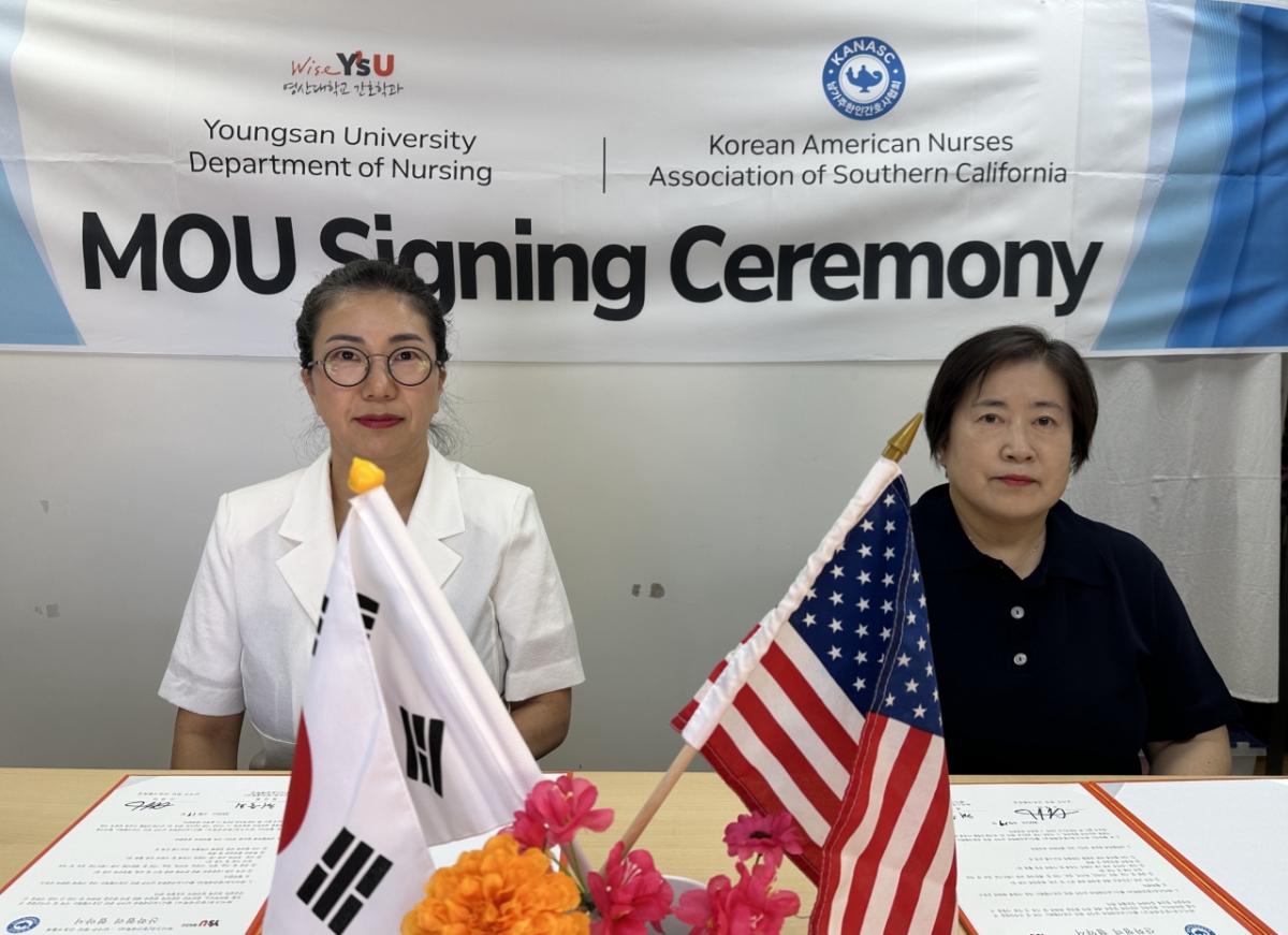 와이즈유(영산대학교) 웰니스보건대학이 지난 19일(현지 시간) 미국 캘리포니아주 로스앤젤레스에서 KANASC(미국 남가주 한인간호사협회, Korean American Nurses Association of Southern California)와 간호학과 학생들의 국제 역량 강화를 위한 업무협약을 체결했다고 27일 밝혔다.