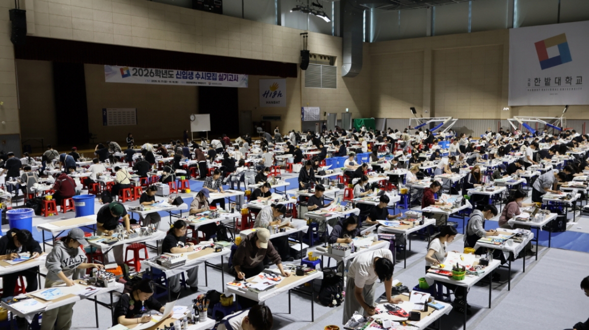 이번 실기고사는 산업디자인학과와 시각·영상디자인학과의 실기 위주 '실기우수자/실기'(일반) 전형 지원자 총 874명을 대상으로 진행됐다. 산업디자인학과는 기초디자인 1개 과목, 시각·영상디자인학과는 △기초디자인 △상황표현 △칸만화 등 3개 과목으로 나눠 시험을 치렀다.