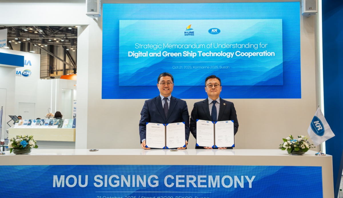 서호동 에이치라인해운 부사장은 "KR과 협력을 통해 데이터 기반의 운항 효율화를 추진하고 국제 규제에 능동적으로 대응해 지속가능한 경쟁력을 확보하겠다"고 말했다.