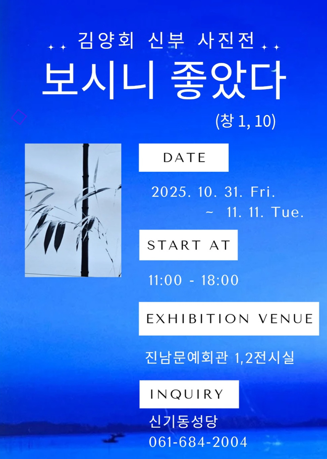 전남 여수시 신기동 성당 김양회(요한보스코) 신부가 '보시니 좋았다' 사진전을 오는 30일 진남문예회관서 개최한다고 29일 밝혔다.