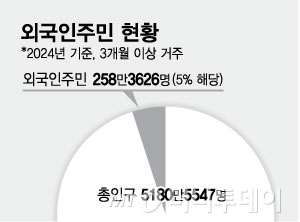 지난해 기준 국내에서 3개월 이상 거주한 외국인주민 수가 258만3626명으로 사상 최대를 기록했다. 전체 외국인의 56%는 수도권에 거주한다.