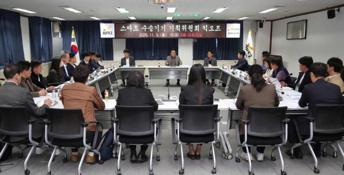 부산진해경제자유구역청이 3일 '부산·경남 스마트 수송기기 기획위원회' 킥오프 회의를 열고 수송기기 산업 생태계 조성 전략을 논의했다.