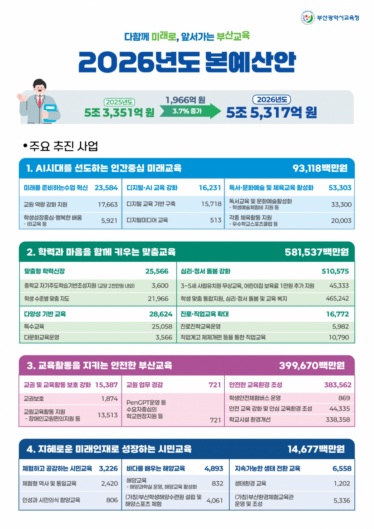 3.7% 증가, AI 미래교육 등 4대 과제 역점 추진