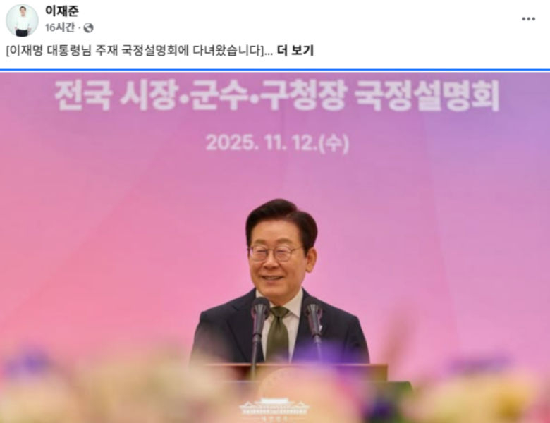 이 시장은 지난 12일 자신의 페이스북을 통해 국정설명회에서 나온 이대통령의 발언을 전했다. 이 대통령은 "단체장은 주민으로부터 권한을 위임받은 사람"이라며 "그 권한을 시민을 위해 투명하고 효율적으로 사용해 달라"고 당부했다. 그러면서 "성남시장 시절 주민들을 직접 만나 그 바람을 실현해 드릴 때가 가장 행복했다"고 말했다.