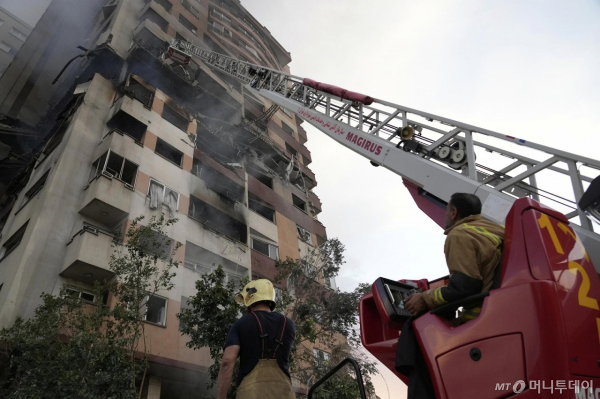 ![[테헤란=AP/뉴시스] 13일(현지 시간) 이란 테헤란 북부의 주거 단지 폭발 현장에서 소방관들이 진화 작업을 하고 있다. 이스라엘방위군(IDF)은 이날 새벽 이스라엘이 이란의 핵·군 시설에 대한 선제타격을 개시했다고 성명을 통해 밝혔다. 2025.06.13. /사진=민경찬](https://thumb.mt.co.kr/cdn-cgi/image/f=avif/21/2025/11/2025111808023745181_1.jpg)