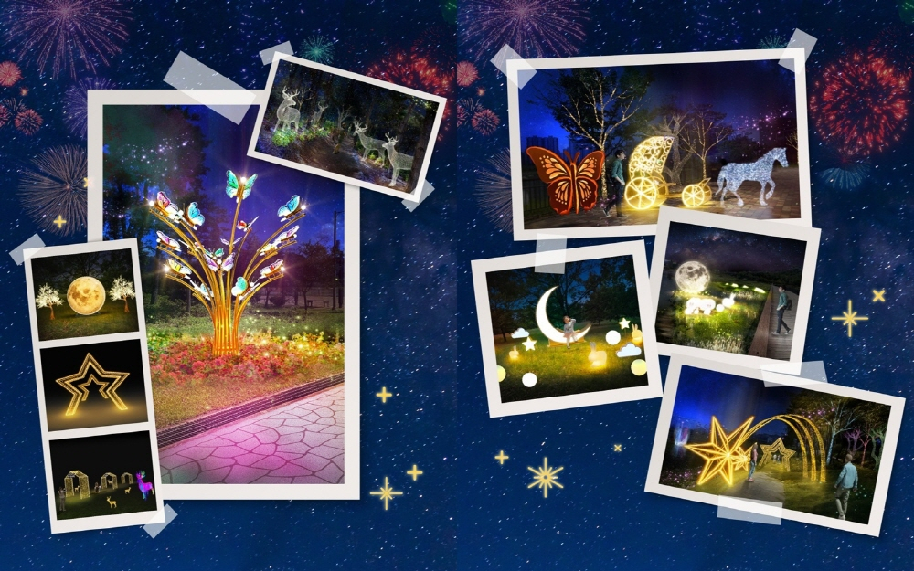 빛의 정원은 △나비가 날아다니는 정원 △음악이 흐르는 음률 다리 △반딧불이 가득한 숲속길 △호수에 떨어진 별똥별 등 호수공원 여울다리에서 산책길까지 이어지는 동선으로 구성됐다. 조형물 전시는 축제 기간 상시 관람이 가능하며, 일부 시설은 축제 종료 후에도 야간 관광자원으로 활용할 계획이다.