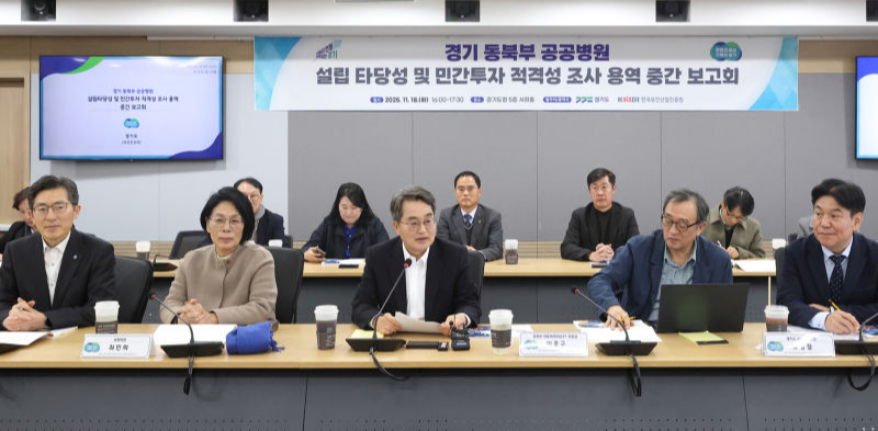 이날 김 지사는 경기도청에서 '경기 동북부 공공병원 설립 타당성 및 민간투자 적격성 조사' 용역 중간보고회를 주재했다. 회의는 남양주시 백봉지구와 양주시 옥정신도시에 각각 300병상 이상 공공의료원을 짓는 계획의 타당성을 중간 점검하는 자리였다.