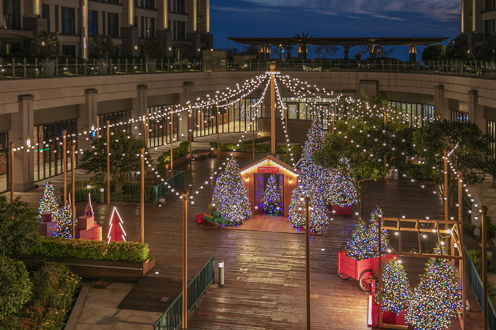 랜딩관과 신화관을 잇는 야외 테라스에서는 은하수가 쏟아지는 듯한 반짝이는 조명과 크고 작은 트리들을 장식해 산타빌리지의 환상적인 풍경을 꾸몄다.