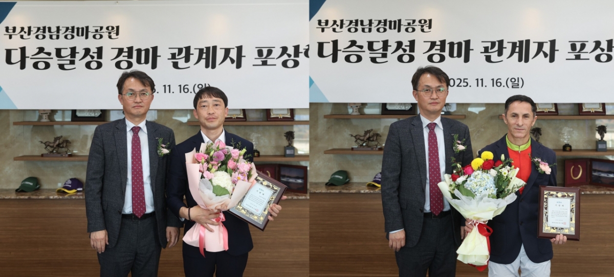 영예의 주인공은 100승을 달성한 구민성 조교사와 500승의 고지를 밟은 다실바 기수다.