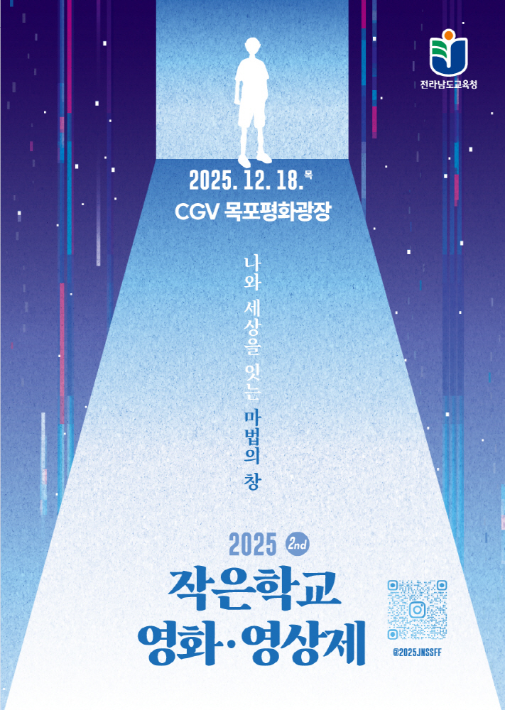 전남교육청이 오는 18일부터 20일까지 목포시 CGV 평화광장과 폰타나비치호텔, 목포시네마MM 등에서 '2025 전남교육청 작은학교 영화·영상제'를 개최한다고 1일 밝혔다.