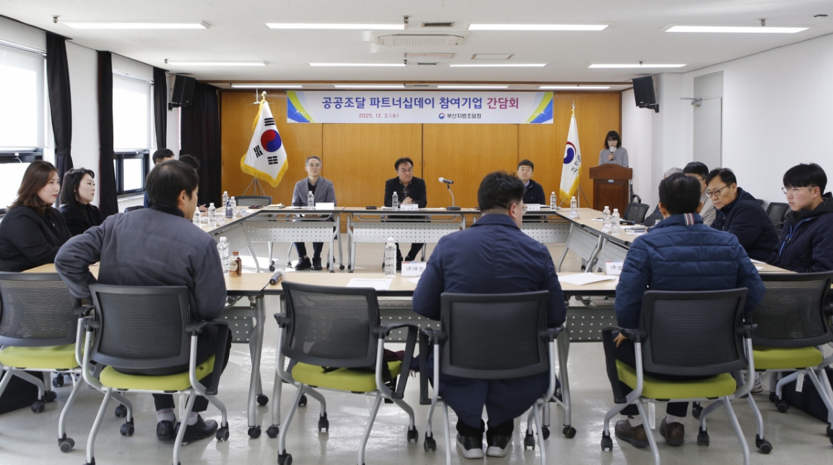 부산조달청은 간담회에서 2025년 파트너십데이 운영현황 및 조달개혁 방안을 공유하고 △우수조달제품 판로 확대 △구매상담의 실효성 제고 방안 △지방청 역할 강화기업의 건의사항을 청취했다. 이를 바탕으로 내년도 운영방향을 구체화한다.