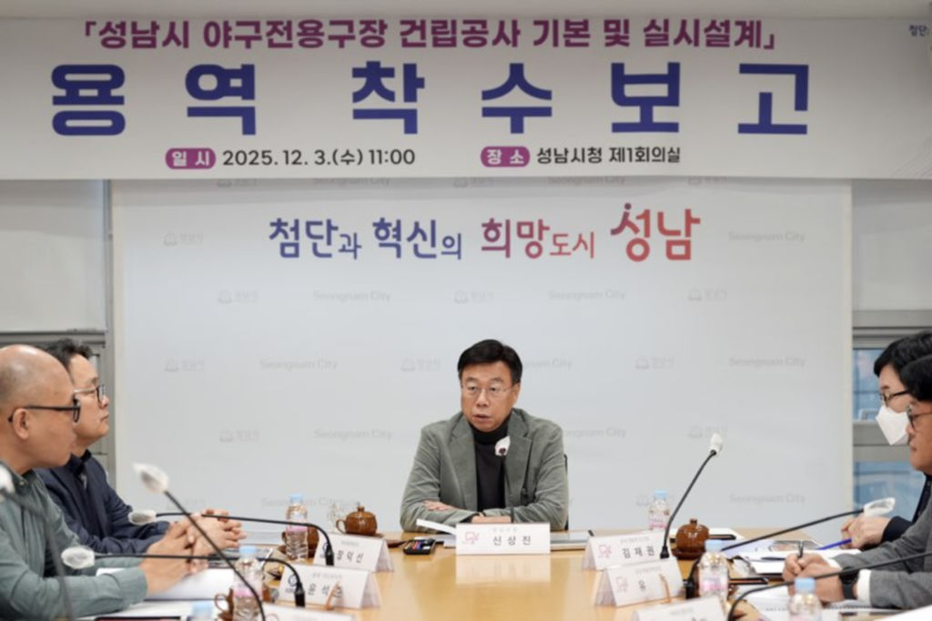 신상진 경기 성남시장은 3일 '성남시 야구전용구장 건립공사 기본 및 실시설계 용역 착수보고회'를 진행했다.