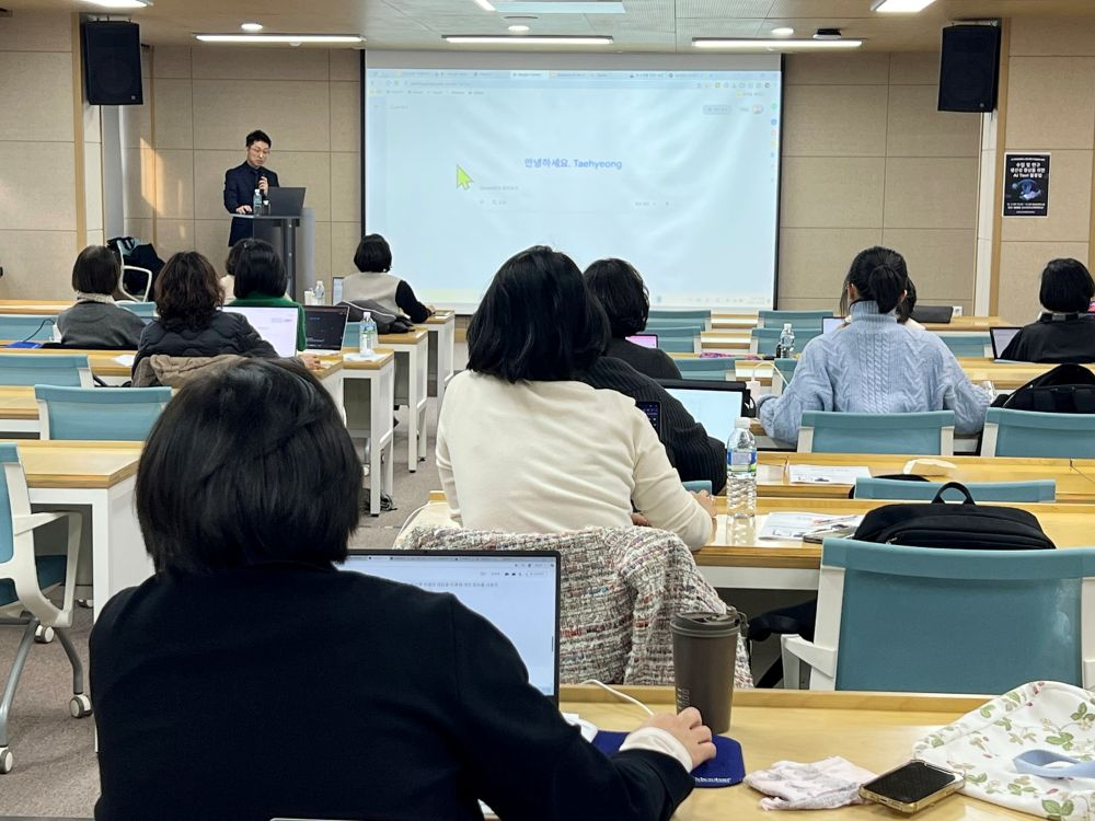 이번 워크숍은 임태형 전주교육대 교수가 지난주 온라인 특강에 이어 대면 실습 강의로진행됐다. 교수자가 수업과 연구 활동에서 활용할 수 있는 생성형 AI 도구들을 살펴보고, 적재적소에 활용하는 방법과 함께 임 교수의 평소 AI 활용 노하우를 공유했다. 또한 NotebookLM, Gemini, Chat GPT 등 최신 생성형 AI의 동향과 함께 AI를 활용한 실제 수업·연구 적용 방법 등도 소개했다.