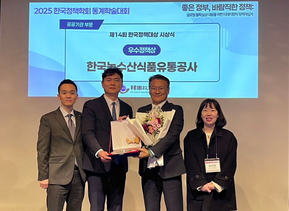 한국농수산식품유통공사(이하'aT')가 외식업계 경영 부담을 완화하는 혁신 서비스를 제공한 성과를 인정받아 한국정책학회가 주최한 '제14회 한국정책대상'에서 우수 정책상을 수상했다고 5일 밝혔다.
