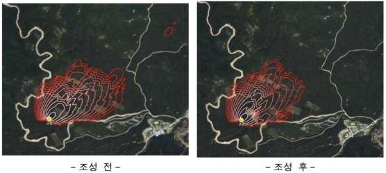 연구진은 소나무림내에 내화수림을 조성한 뒤 산불이 발생한 지점을 기준으로 기상 조건·지형·연료 상태 등을 종합해 시간대별로 산불 피해 예상 범위를 예측하는 도구인 산불확산예측시스템을 활용, 조성 전후의 산불 확산 경향을 비교·분석했다.
