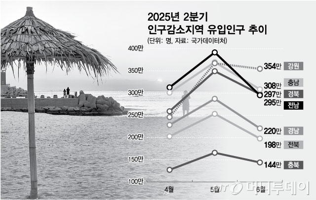 행정안전부와 국가데이터처는 이같은 내용의 '2025년 2분기(4~6월) 인구감소지역 생활인구 산정결과'를 9일 공표했다. 생활인구는 등록된 주민과 외국인 등 주민등록인구에 월 1회, 하루 3시간 이상 통근·통학·관광 등을 목적으로 해당 지역에 머문 '체류인구'를 합한 개념이다.