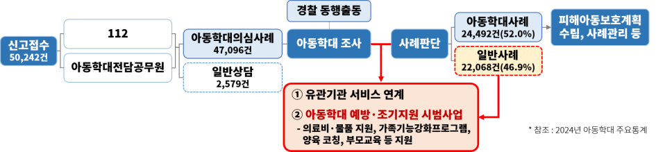 올해부터는 아동학대 신고가 접수된 가정뿐만 아니라 △지자체의 위기아동 발굴 사업으로 발굴된 아동 중 학대 예방 차원의 지원이 필요한 경우 △시설·기관이 아동을 장기 보호하는 중 학대로 신고된 일반사례에도 가족관계 개선 프로그램, 양육 코칭 등을 적극 지원할 수 있도록 했다.
