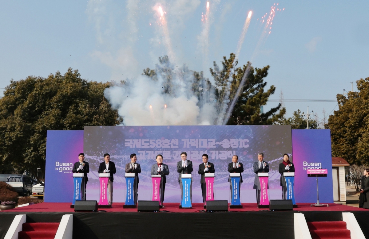 부산시가 2일 가덕도신공항·부산신항과 도심을 연결하는 가덕대교~송정IC 고가도로 건설사업 기공식을 개최했다.