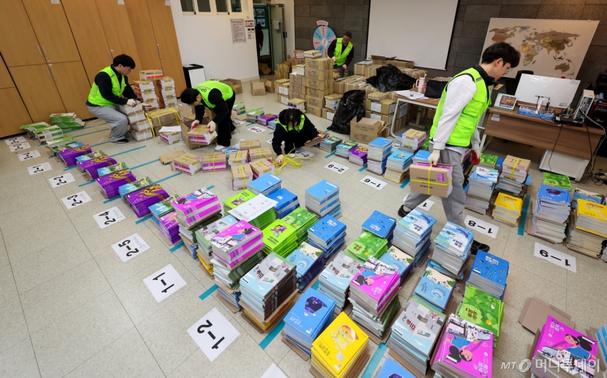 ![[대구=뉴시스] 이무열 기자 = 9일 대구 동구 대구관광고등학교에서 대구학교지원센터 관계자들이 신학기를 앞두고 학생들에게 배부할 교과서 분류 작업을 하고 있다. 2026.02.09. lmy@newsis.com /사진=이무열](https://thumb.mt.co.kr/cdn-cgi/image/f=avif/21/2026/02/2026021209301828377_1.jpg)