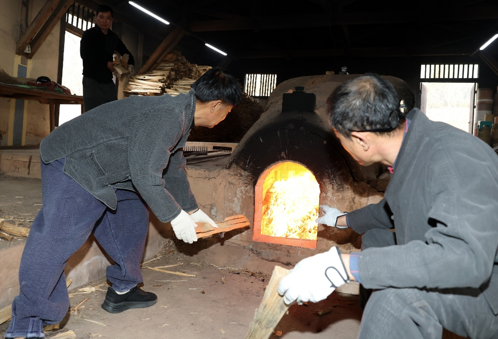 제54회 강진청자축제 개막을 앞두고 12일 전남 강진군 대구면 고려청자박물관 제2호 가마에 도공들이 전통 방식 그대로 소나무 장작을 이용해 불을 지피고 있다. 1300°C로 정성껏 구워진 청자는 오는 22일 세상의 빛을 보게 된다.