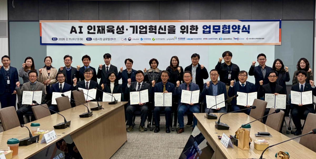 재단은 지난 11일 시흥시청에서 시흥시, 고용노동부 안산고용노동지청, 한국공학대학교, 경기과학기술대학교, 중소벤처기업연수원, 한국산업인력공단 경기서부지사, 시흥시소상공인연합회, 시흥상공회의소, 시흥시기업인협회, (사)시흥시소부장경영인협회 등 10개 유관기관과 'AI 인재 육성·기업혁신을 위한 업무협약'을 체결했다.