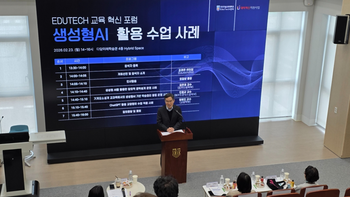 한국기술교육대학교(이하 한기대)가 지난 23일 교내 다담미래학습관에서 교직원 50여명이 참여한 가운데 '에듀테크 교육혁신 포럼-생성형 AI 활용 수업 사례' 행사를 열었다고 24일 밝혔다.