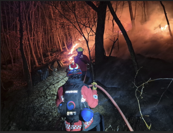 이번 산불은 확산 속도가 빨라 지난 23일 오후 5시20분 '산불 확산 대응 1단계', 24일 오전 2시에는 '산불 확산 대응 2단계'가 발령되기도 했다.