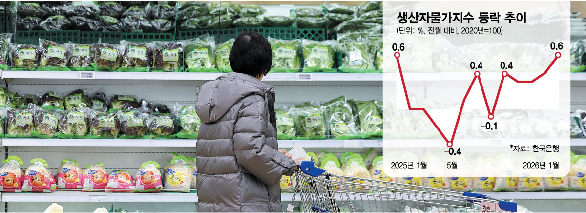 24일 한국은행이 발표한 '2026년 1월 생산자물가지수(잠정)'에 따르면 1월 생산자물가지수는 전월 대비 0.6% 상승했다. 지난해 9월 이후 5개월 연속 오름세다. 전년 동월 대비로는 1.9% 상승해 전월과 같은 수준을 유지했다.
