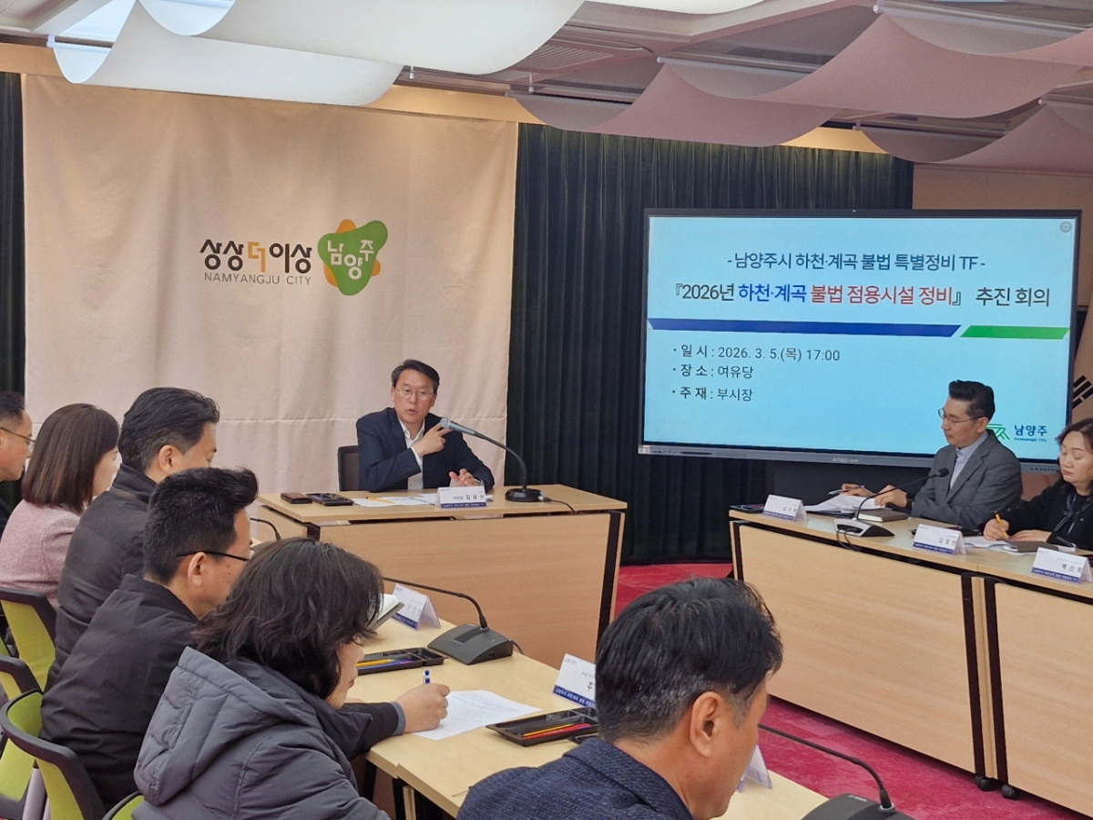 경기 남양주시가 '남양주시 하천·계곡 불법 특별정비 TF'를 구성하고 첫 회의를 개최해 하천 내 불법시설물 근절과 수변 환경 재정비에 본격 나선다고 6일 밝혔다.